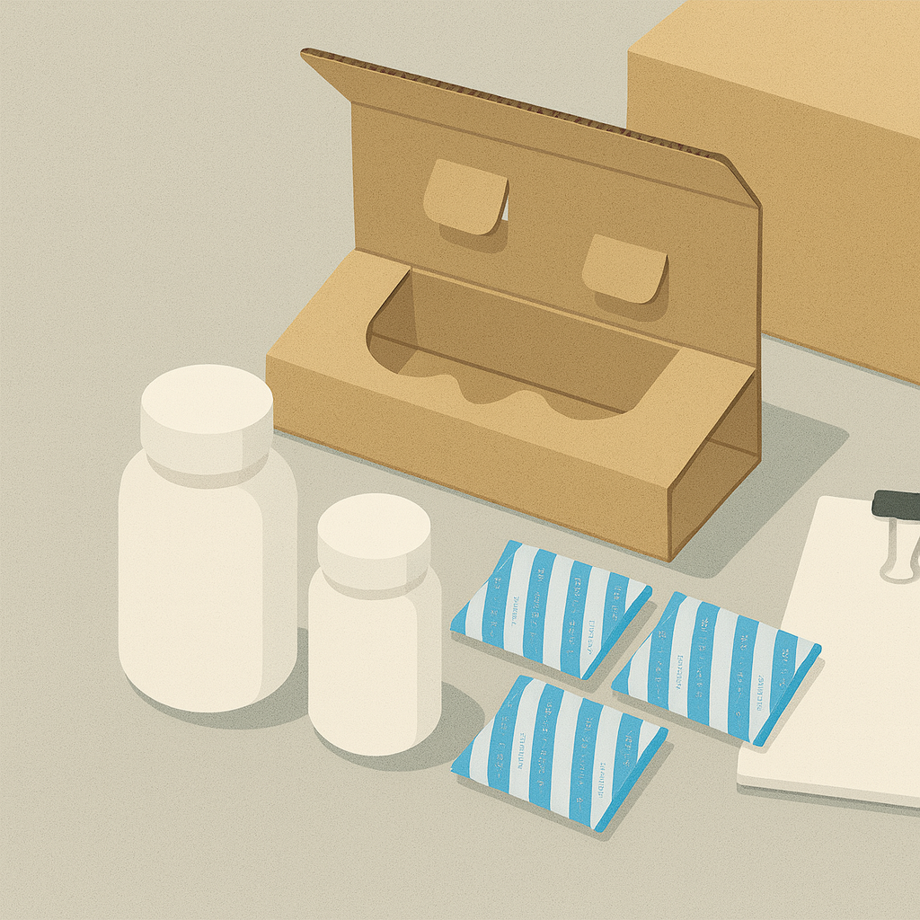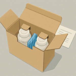塗料ボトル(大小2本)、説明書(A4二つ折り)、保冷剤2個を同梱してCOOL便で発送したいというご依頼をいただきました。